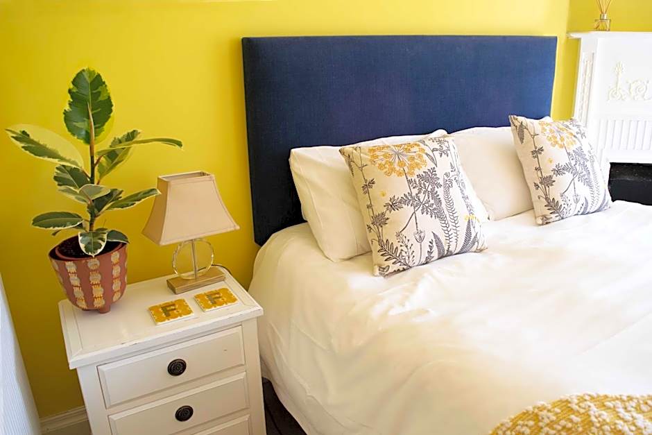 This large double room with Super-King bed provides a street view towards the sea. It has the original fireplace, bay windows and internal doors. With soundproofing and carpet, this room has a serene ambiance. Dogs cannot be accommodated in this room.